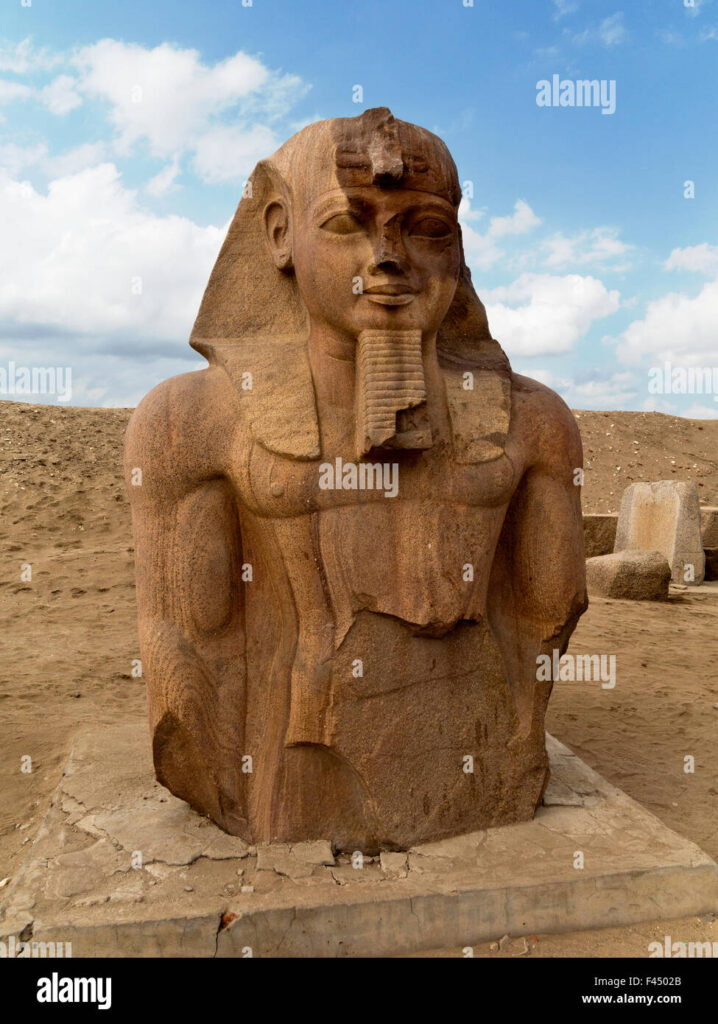 epa06661624 An undated handout photo made available by the Egyptian Ministry of Antiquities shows a computer generated picture imagining the colossus of King Psamtik I that was discovered a year earlier by an Egyptian-German mission at Heliopolis, Cairo, Egypt. The colossus of King Psamtik I was unveiled at the Egyptian Museum in Tahrir on 11 April 2018 as part of 4500 fragments, some of which date to the second millennium BC, found at Souq el-Khamis area in Matariya by a joint Egyptian-German archeological mission. EPA/EGYPTIAN MINISTRY OF ANTIQUITIES HANDOUT EDITORIAL USE ONLY/NO SALESShawabti