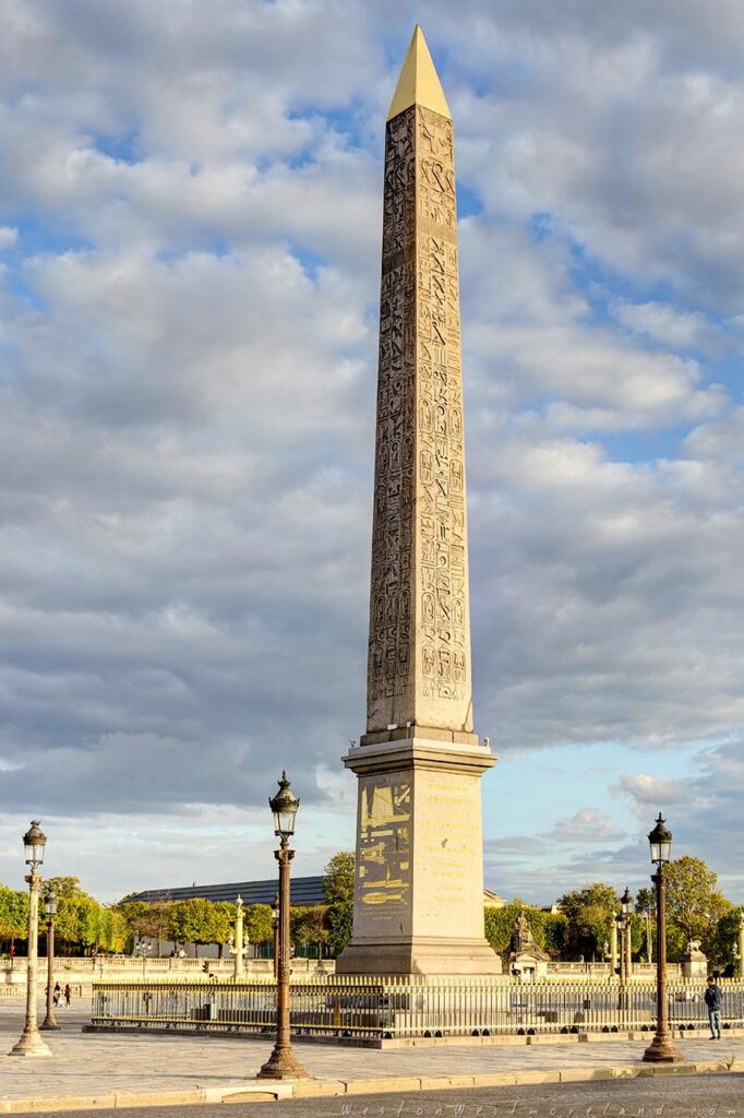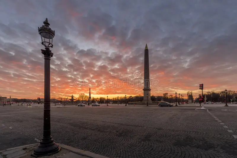 Cloudy day at the place de la Concorde with the Obelisk and Eiffel tower, in Paris, France.Paris, France – July 6, 2013: Illuminated Louvre museum during sunset in Paris. The Pyramid is the main entrance to the Louvre Museum.Salmon-red clouds hovering over l’Obélisque de Louxor at dusk.