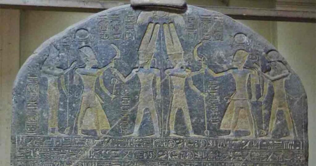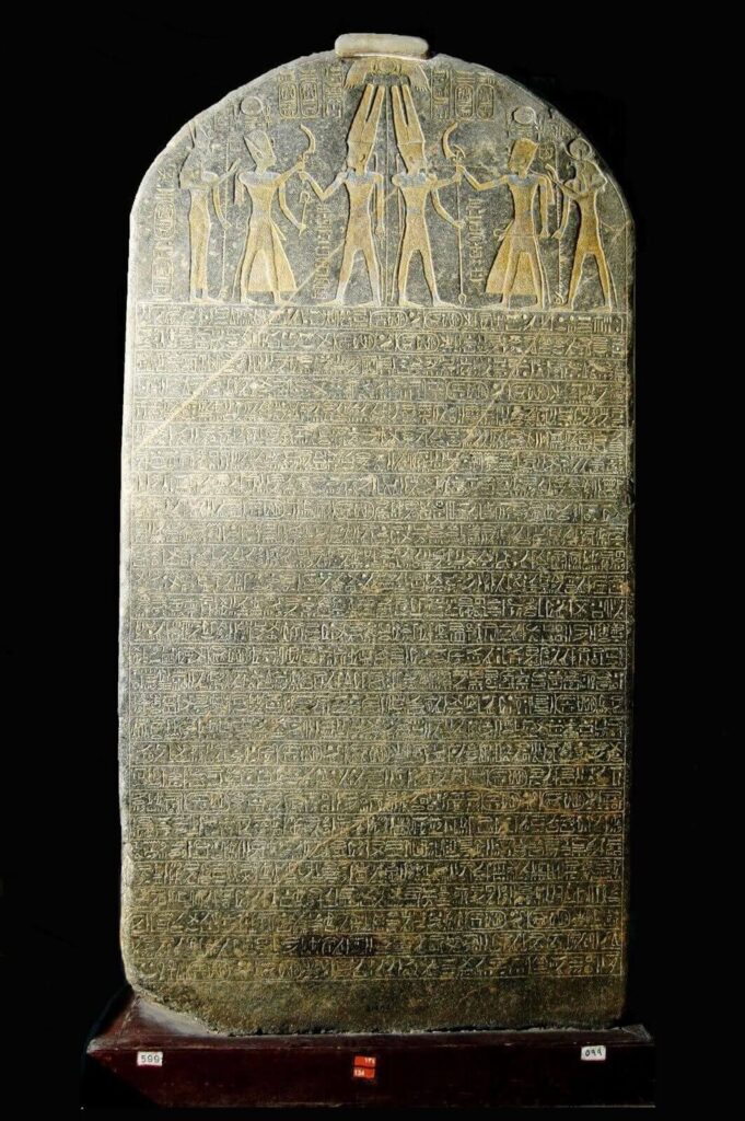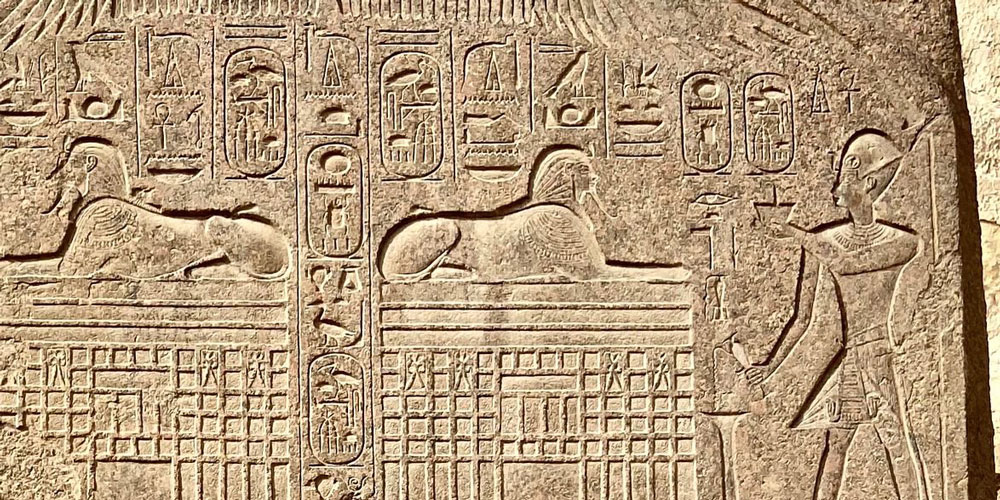 “Horus: Mighty Bull, beloved of Ma’at. King of Upper and Lower Egypt Usermaatre-Setepenre, son of Ra Ramesses, beloved of Ra-Horakhty. He made this monument of enduring granite for his father Ra-Horakhty, lord of heaven, that he may grant life, stability, and dominion forever.”