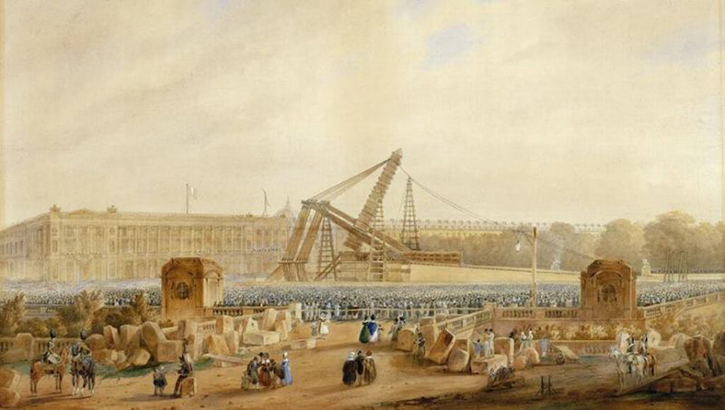 “The obelisk of Luxor, erected at Thebes under the reign of Ramesses II about thirteen centuries before the Christian era, was given to France by Muhammad Ali, Viceroy of Egypt, and erected in this square on 25 October 1836 during the reign of Louis-Philippe, King of the French.”
