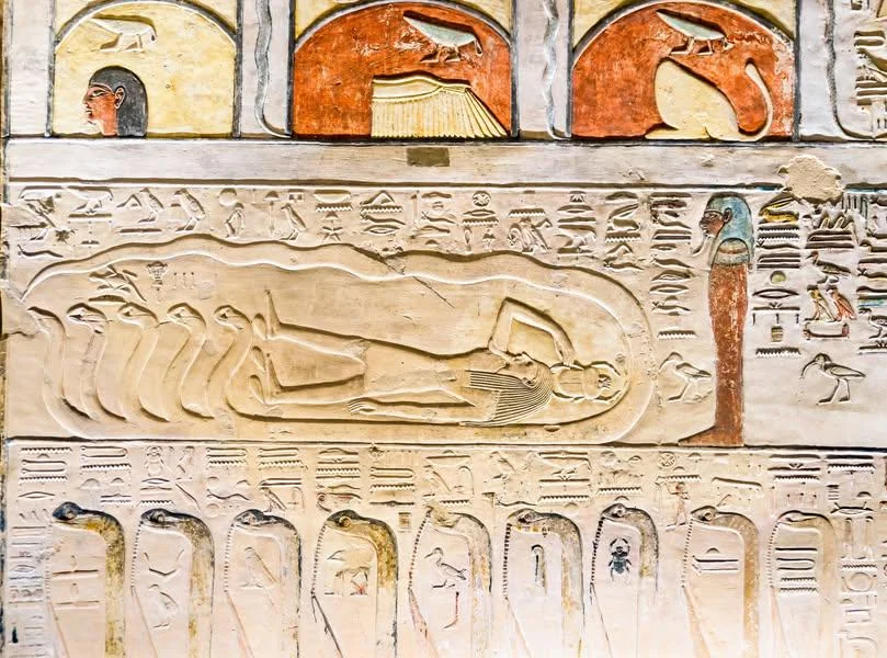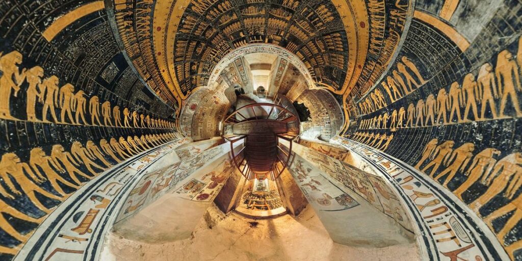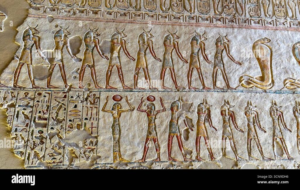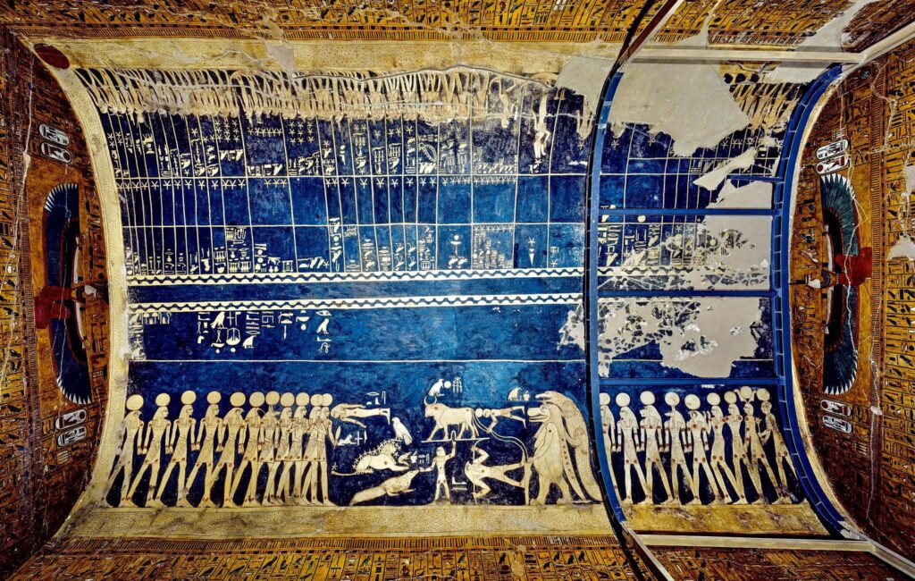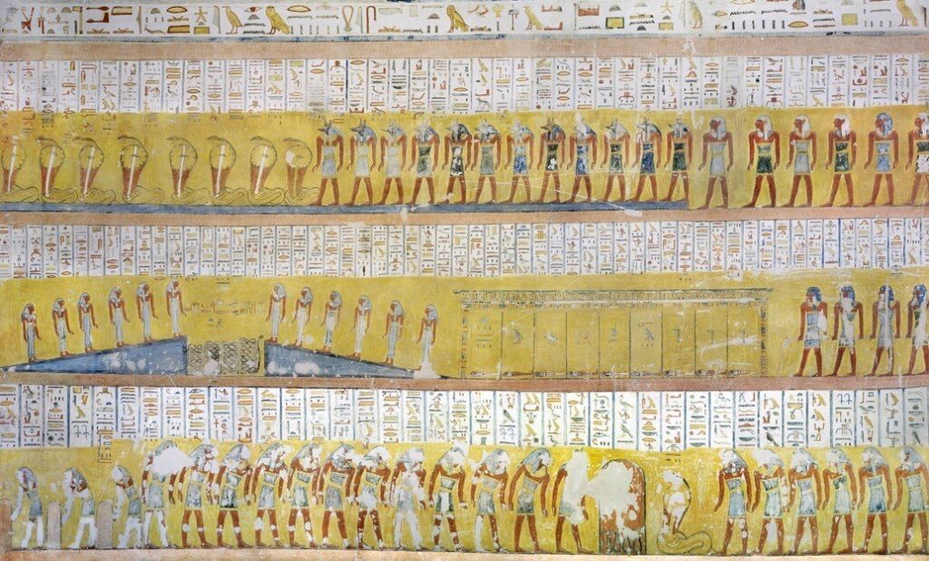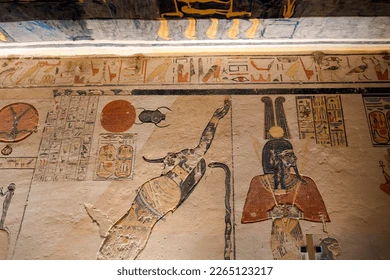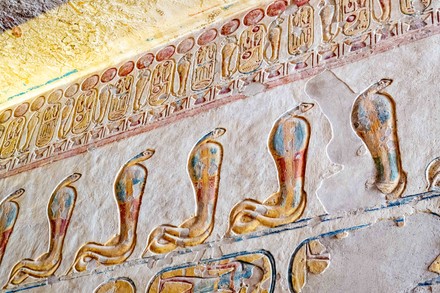 Image ref 114632154. Copyright Shutterstock No reproduction without permission. See www.shutterstock.com/license for more information.Image ref 114632145. Copyright Shutterstock No reproduction without permission. See www.shutterstock.com/license for more information.Image ref 114632143. Copyright Shutterstock No reproduction without permission. See www.shutterstock.com/license for more information.Image ref 114632134. Copyright Shutterstock No reproduction without permission. See www.shutterstock.com/license for more information.Image ref 114632150. Copyright Shutterstock No reproduction without permission. See www.shutterstock.com/license for more information.Image ref 114632094. Copyright Shutterstock No reproduction without permission. See www.shutterstock.com/license for more information.EGYPT – AUGUST 11: Egypt, Thebes (UNESCO World Heritage List, 1979) – Luxor – Valley of the Kings – Tomb of Ramses IX (KV 6) – Third passage – Detail of the frescoed ceiling representing The Egyptian Amduat: The Book of the Hidden Chamber – (Dinasty XX, Ramses IX, 1125-1107 b.C.). (Photo by S. VANNINI/De Agostini/Getty Images)KV6 tomb of Ramses IX at the Valley of the Kings on the West Bank of the Nile river off of Egypt’s southern city of Luxor, Egypt. AfricaHieroglyphs in the Tomb of Ramesses IX, KV6 at Valley of Kings,Luxor,EgyptImage ref 114632154. Copyright Shutterstock No reproduction without permission. See www.shutterstock.com/license for more information.Image ref 114632145. Copyright Shutterstock No reproduction without permission. See www.shutterstock.com/license for more information.Image ref 114632143. Copyright Shutterstock No reproduction without permission. See www.shutterstock.com/license for more information.Image ref 114632134. Copyright Shutterstock No reproduction without permission. See www.shutterstock.com/license for more information.Image ref 114632150. Copyright Shutterstock No reproduction without permission. See www.shutterstock.com/license for more information.Image ref 114632094. Copyright Shutterstock No reproduction without permission. See www.shutterstock.com/license for more information.