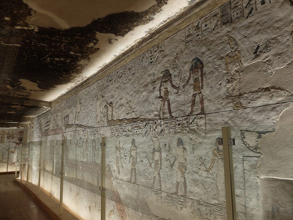 Luxor, Egypt – September 11, 2018: Tomb KV2 in the Valley of the Kings is the burial place of Ramesses IVReliefs and Murals, Tomb of Ramses IV, KV2, Valley of the Kings, UNESCO World Heritage Site, Luxor, Thebes, Egypt, North Africa, AfricaReliefs and Murals, Tomb of Ramses IV, KV2, Valley of the Kings, UNESCO World Heritage Site, Luxor, Thebes, Egypt, North Africa, AfricaSarcophagus in Burial Chamber, Tomb of Ramses IV, KV2, Valley of the Kings, UNESCO World Heritage Site, Luxor, Thebes, Egypt, North Africa, AfricaCreative Commons CC by 2.0Creative Commons CC by 2.0Creative Commons CC by 2.0Tomb of Ramses IV – Egypt Tours Portal??????????????????????????????????Beautifully decorated ceiling and walls with hieroglyphics from Book of the Dead and Litany of Ra in the Tomb of Ramesses IV,KV2, in the Valley of Kings,Luxor,EgyptReliefs and Murals, Tomb of Ramses IV, KV2, Valley of the Kings, UNESCO World Heritage Site, Luxor, Thebes, Egypt, North Africa, AfricaSarcophagus in Burial Chamber, Tomb of Ramses IV, KV2, Valley of the Kings, UNESCO World Heritage Site, Luxor, Thebes, Egypt, North Africa, AfricaTomb of Ramses IV – Egypt Tours Portal??????????????????????????????????