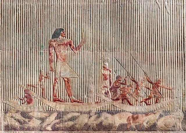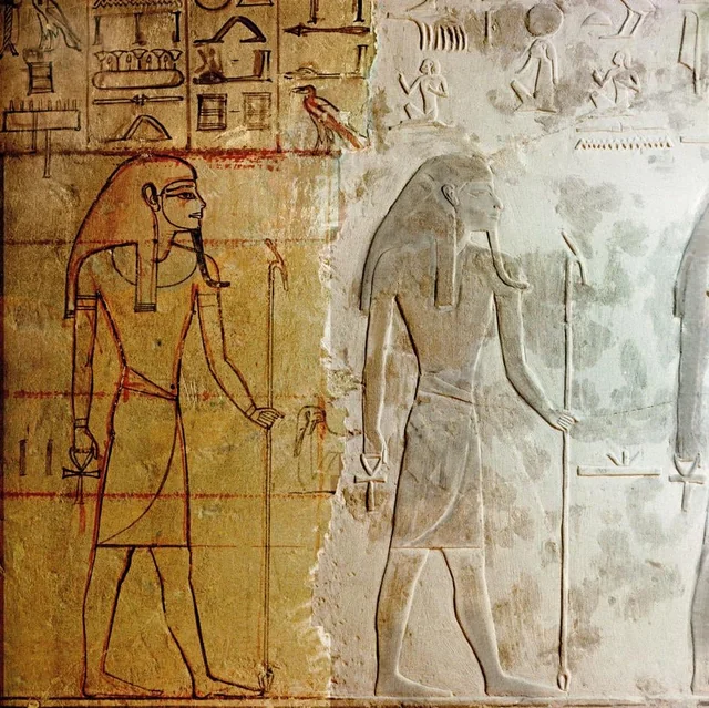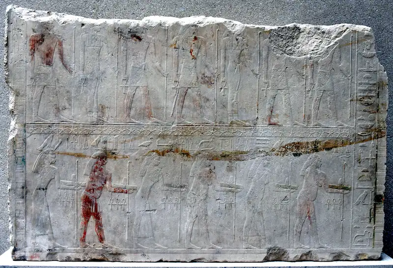 One of Six Panels from The Mastaba of Hesire a High Official of King Zoser Who what Chief of dentists and Physicians As Well As Holding Other titles he carries The Tools of a Scribe Over His Shoulder Country of ORIGIN Egypt Culture Ancient Egyptian Date Period 3rd Dynasty C 2700 2600 BC Place of ORIGIN Saqqara Material Size Wood High PUBLICATIONxINxGERxSUIxAUTxHUNxONLY Copyright WernerxForman 951_05_55401375East wall from the Tomb of Irukaptah at Saqqara . Giza .Egypt .Statue of Mereruka in the sacrifice room of the Mastaba or funerary building located in Saqqara, Cairo, Egypt.Saqqara, Egypt – December 13 2023: Painted bas relief figures showing daily life in ancient Egypt inside Tomb of Kagemni in Saqqara necropolis, Saqqara, Egypt