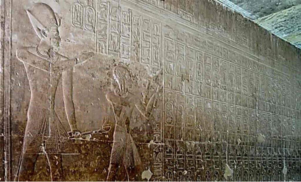 The hieroglyphs visible today are essentially the same inscriptions carved for Ramesses II.