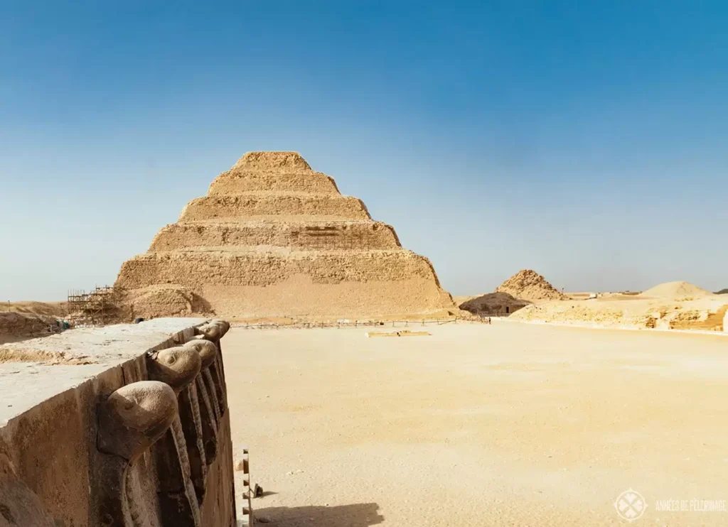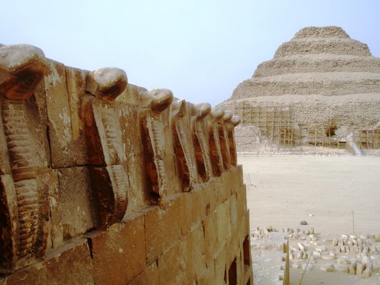 Saqqara (Egypt), Step pyramid of king Djoser, c. 2600 BC. – Court of Hebsed, reconstruction. Illustration from: Jean-Philippe Lauer, Fouilles à Sakkarah (Planche LVII) / La Pyramide à Degrés (Service des Antiquités de l’Egypte / Institut Français d’Archéologie Orientale / Le Caire 1936). Credit: Album / akg-images / Gilles MermetSakkara; The Step Pyramid of Djoser; Egyptxr:d:DAF130IlonM:13,j:8430023835693147257,t:23120411Saqqara Step Pyramid Facts – Djoser Pyramid Facts – First Pyramid in EgyptLimestone Statue of DjoserEGYPT – CIRCA 2003: The Pharaoh Djoser, painted limestone statue, from the Pyramid and Mortuary Complex of Djoser at Saqqara. Egyptian Civilisation, Old Kingdom, Dynasty III. Cairo, Egyptian Museum (Photo by DeAgostini/Getty Images)UNSPECIFIED – FEBRUARY 14: Pharaoh Djoser, painted limestone statue, from the mortuary complex of Djoser in Saqqara. Egyptian civilisation, Old Kingdom, Dynasty III. Detail. Cairo, Egyptian Museum (Photo by DeAgostini/Getty Images)EGYPT – FEBRUARY 14: Pads cobra shape, Funerary Complex of Djoser with the step pyramid in the background, Saqqara, Memphis (UNESCO World Heritage List, 1979). Egyptian civilisation, Old Kingdom, Dynasty III. Detail. (Photo by DeAgostini/Getty Images)