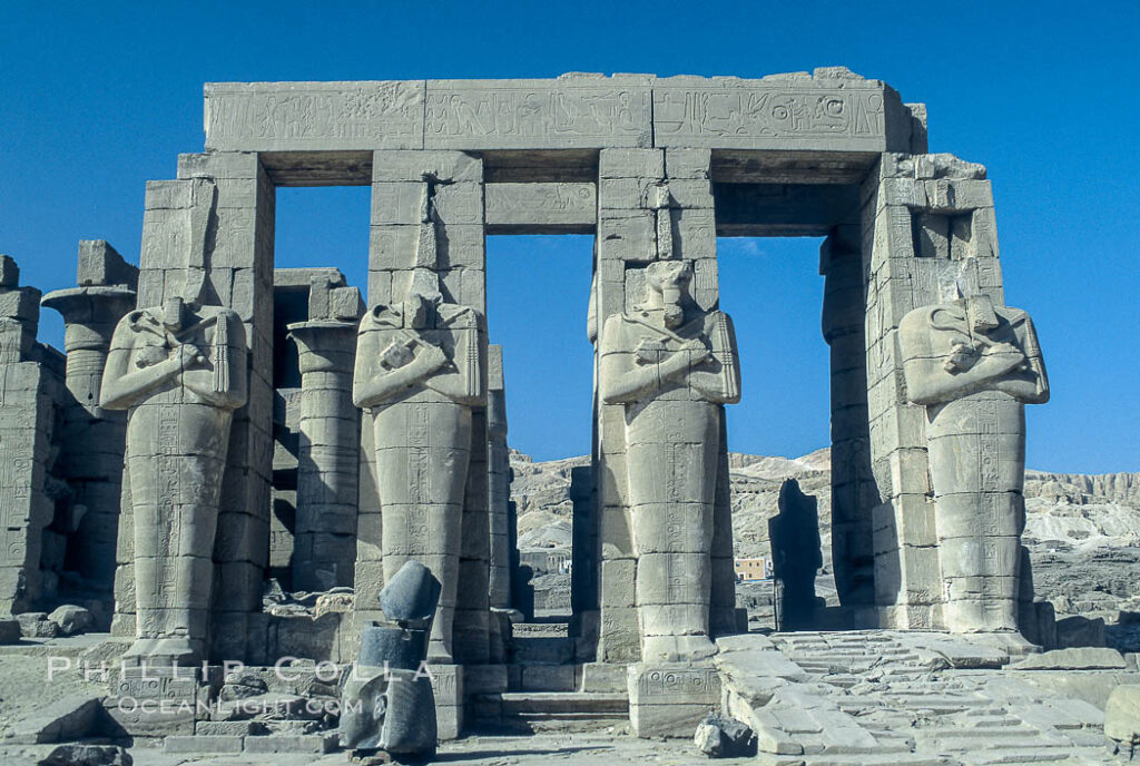 www.thomaskotlorz.deThe Great Temple of Ramesses ll, Abu Simbel, UNESCO World Heritage Site, Egypt, North Africa, AfricaThe Ramesseum Temple – Egypt Tours Portal????????????????????????????????????????????????????????????The image was captured close to noon on august 21st 2023, on the East Bank in Luxor, Egypt, on a hot and cloudless day, while visiting the Luxor Temple Complex. The image shows a seated statue of Ramesses II, in front of the First Pylon, marking the entrance to the historic complex, which is one of the UNESCO World Heritage sites of Luxor. The picture was made on a visit to the complex while traveling on a Nile cruise.Egypt. Aerial view over the West Bank of Luxor – ruins of the Ramesseum (mortuary temple of Pharaoh Ramesses II)Mortuary Temple of Ramesses II – Egypt Tours PortalElisofon, EliotRamesseum – Egypt Tours PortalRamesseum.The Ramesseum Temple – Egypt Tours PortalSeated statue of Ramesses II by the Luxor Temple entrance, Egypt.