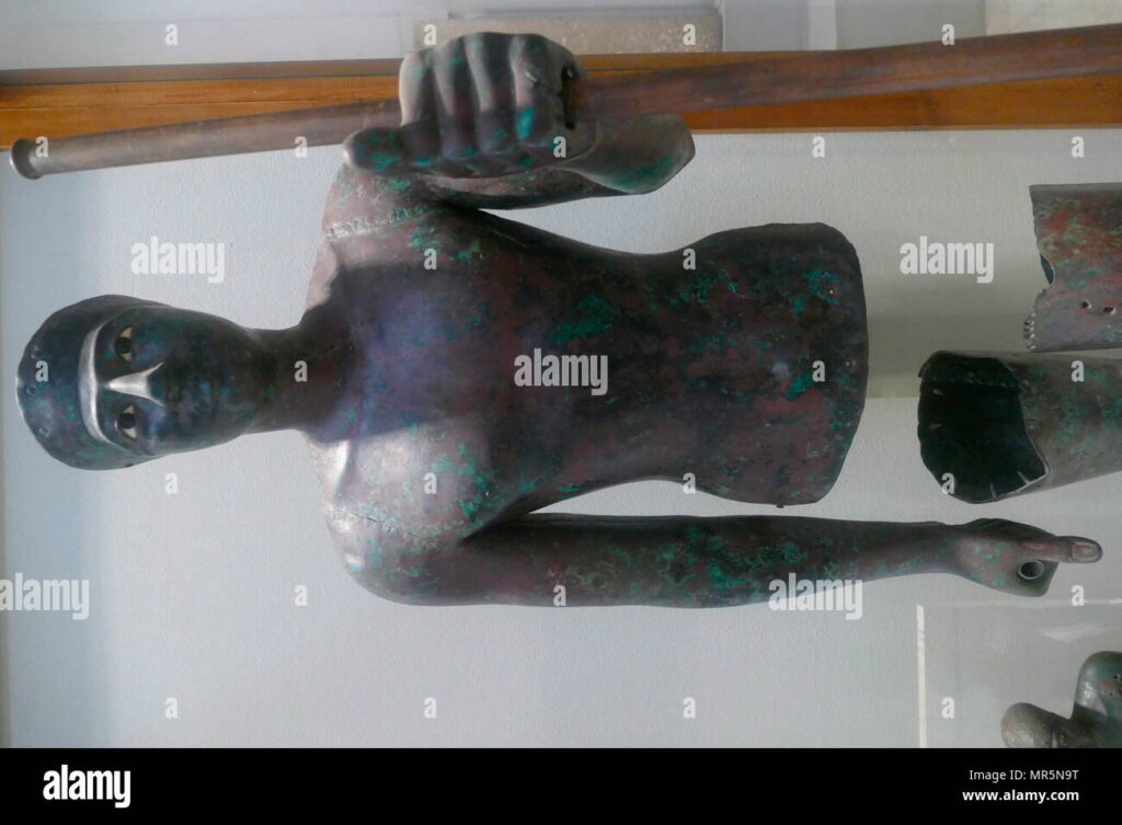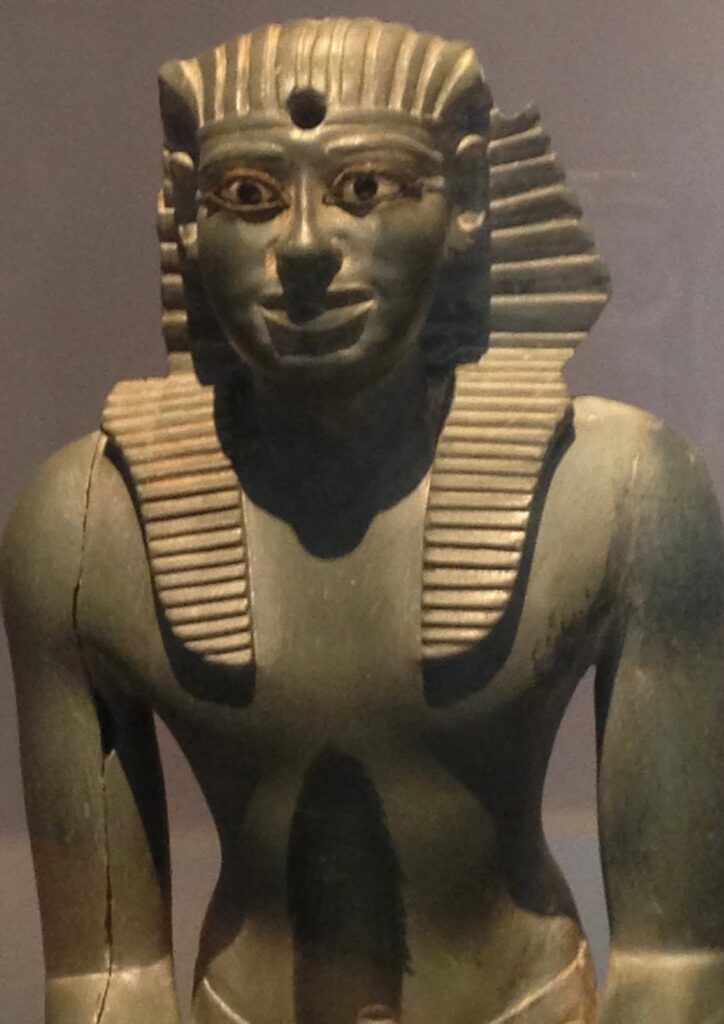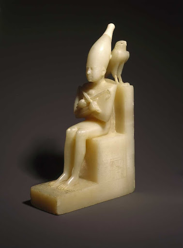 AMO1216329 Statuette of a child in a shroud (faience) by Egyptian 12th Dynasty (1991-1786 BC); height: 12 cm; Ashmolean Museum, University of Oxford, UK; (add.info.: Egypt