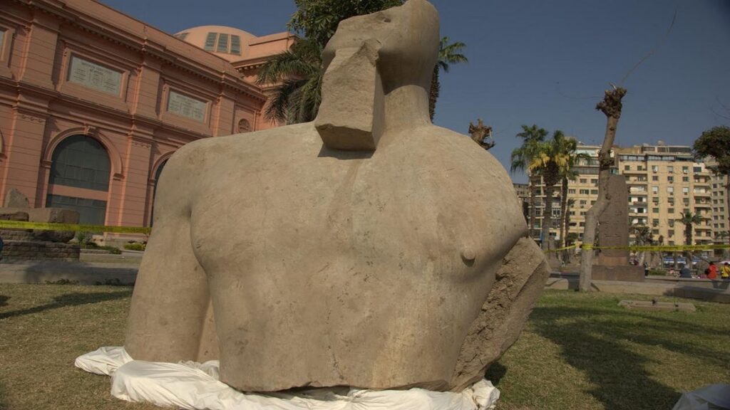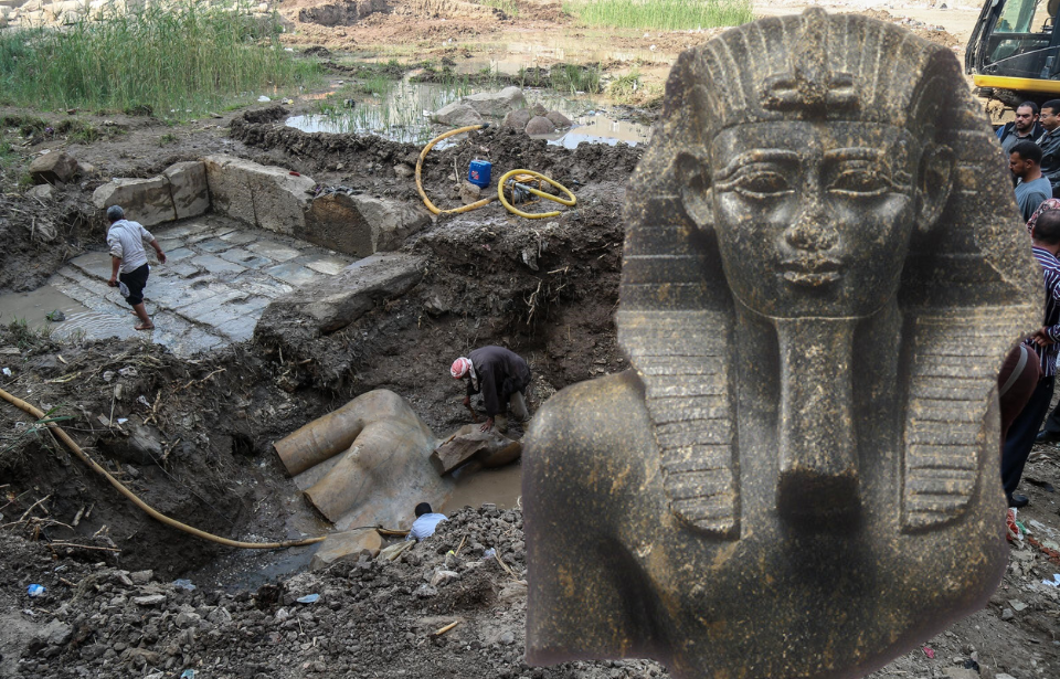 epa06661624 An undated handout photo made available by the Egyptian Ministry of Antiquities shows a computer generated picture imagining the colossus of King Psamtik I that was discovered a year earlier by an Egyptian-German mission at Heliopolis, Cairo, Egypt. The colossus of King Psamtik I was unveiled at the Egyptian Museum in Tahrir on 11 April 2018 as part of 4500 fragments, some of which date to the second millennium BC, found at Souq el-Khamis area in Matariya by a joint Egyptian-German archeological mission. EPA/EGYPTIAN MINISTRY OF ANTIQUITIES HANDOUT EDITORIAL USE ONLY/NO SALESShawabti